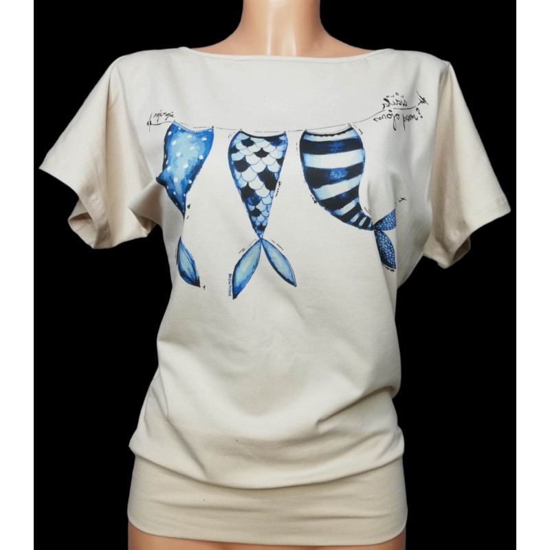 Comfortable, wider top made from cotton jersey in beige colour.
