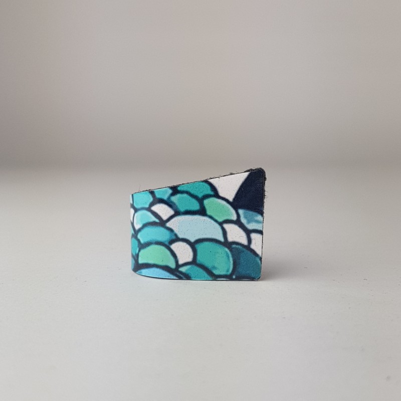 Ring in combination of black felt and graphic printed steel. The ring is adjustable size that it fully fit to your finger. Size approx 2,2 cm.