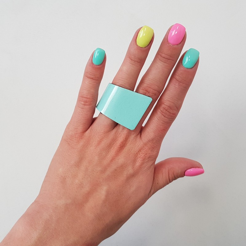 Ring in combination of black felt and graphic printed steel. The ring is adjustable size that it fully fit to your finger.
