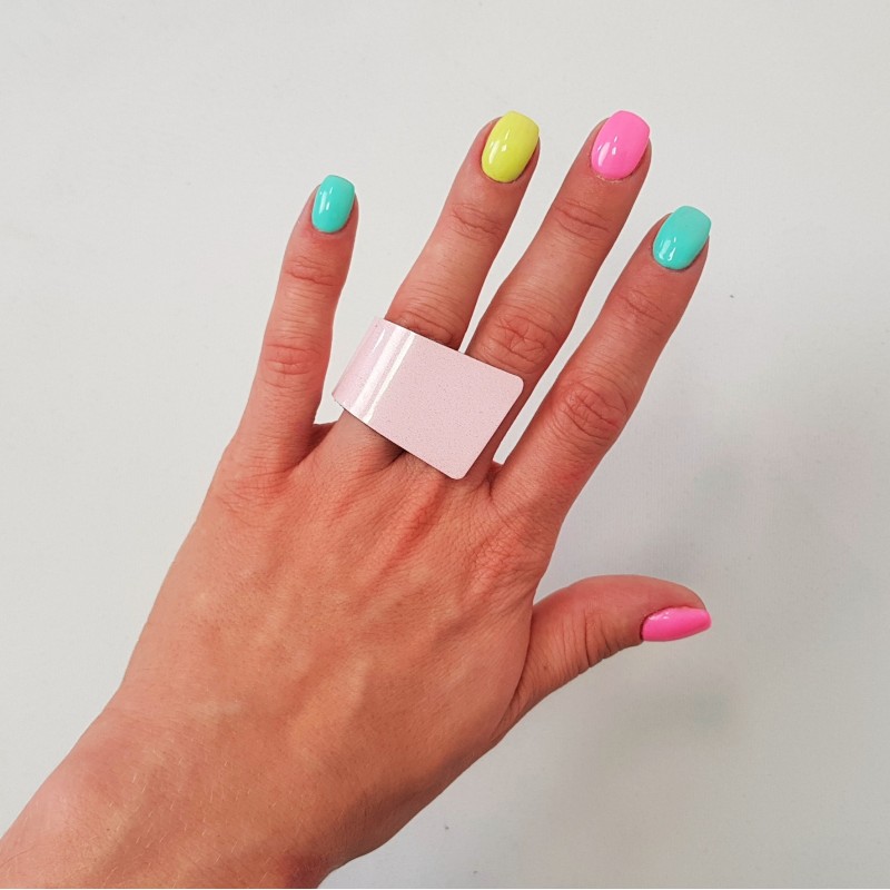 Ring in combination of black felt and graphic printed steel. The ring is adjustable size that it fully fit to your finger.