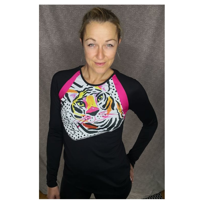 Sport shirt with a tiger print, made of a warmer sprots jersey, wich dries quickly, breathes and is pleasant to the touch.