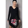 Črna obleka iz bombažne prevešanke, ročno porisana z bleščečimi barvami...