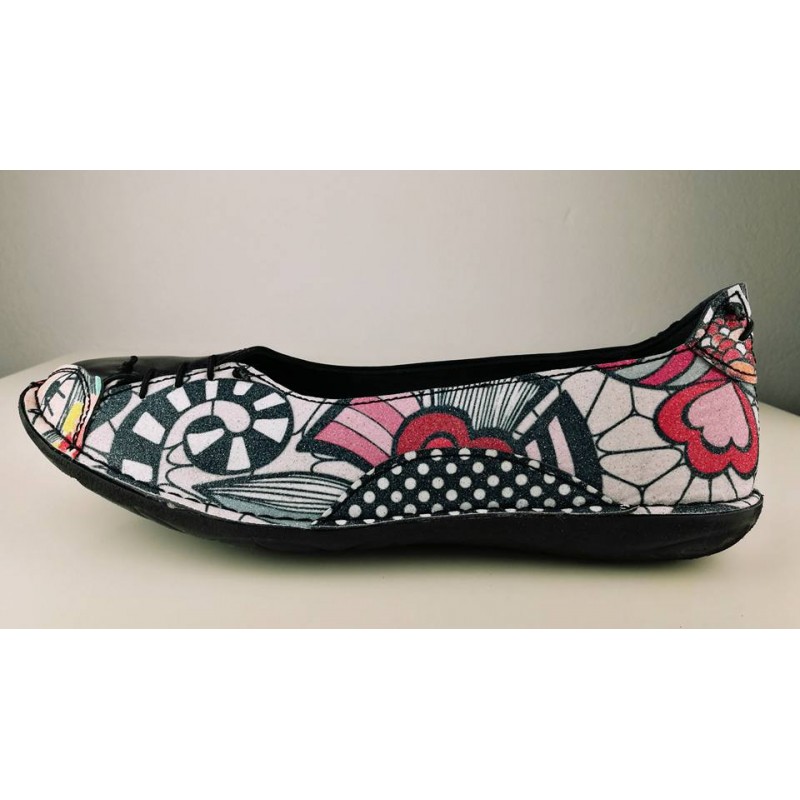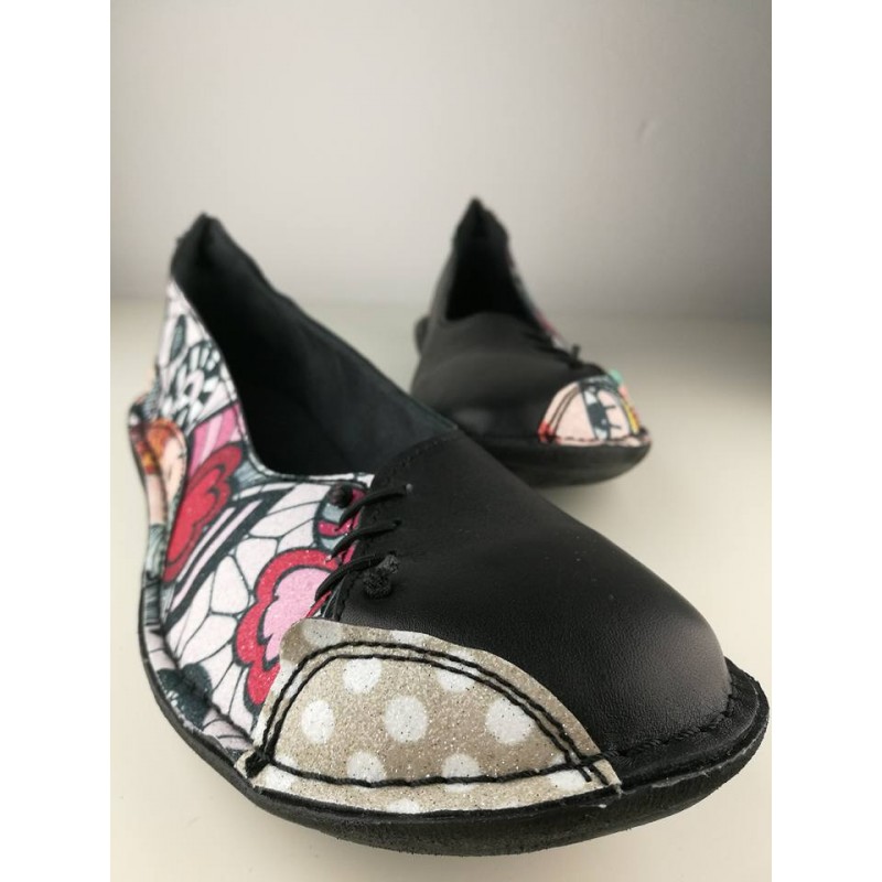 Čeveljci so ročno delo izpod gorenjskih hribov. Izdelani so iz naravnega usnja in kombinirani s potiskano mikrofibro. Čeveljci so postali umetniški medij Katjinih slikarij.