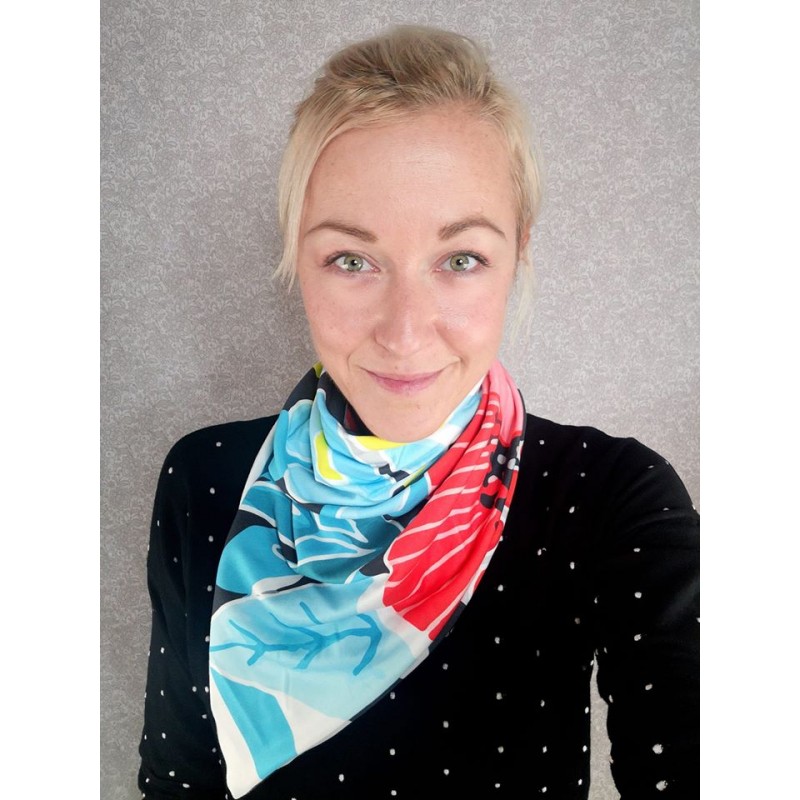 Ilustrirana trikotna ruta s potiskom cvetja, velikosti 105 x 53 cm