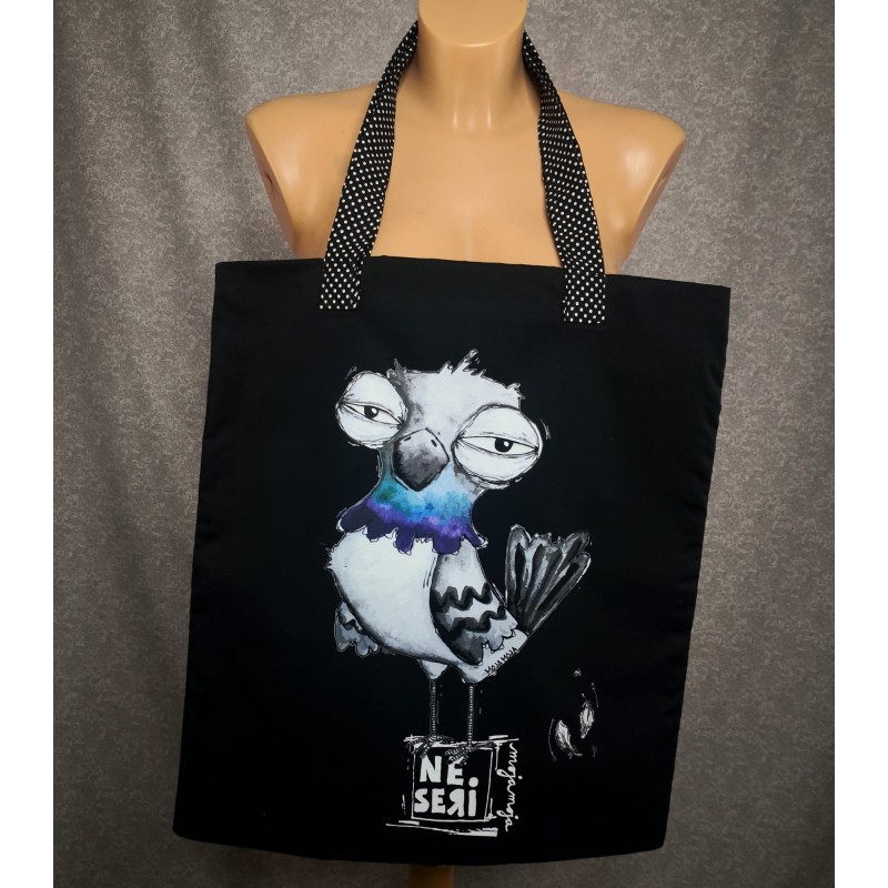 Bombažna nakupovalna vrečka Ne seri, dimenzije cca 43 x 48 cm.