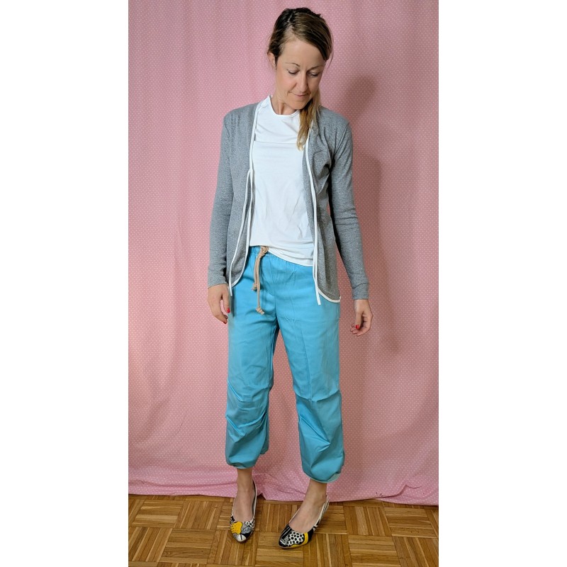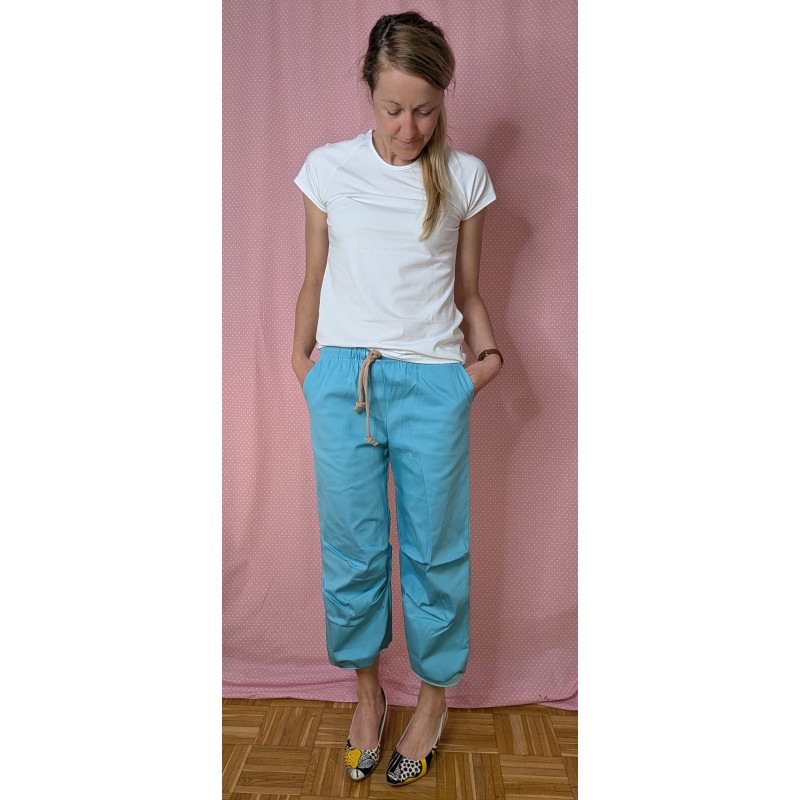 Udobne kapri hlače iz bombažnega kepra z žepi, elastiko v pasu.