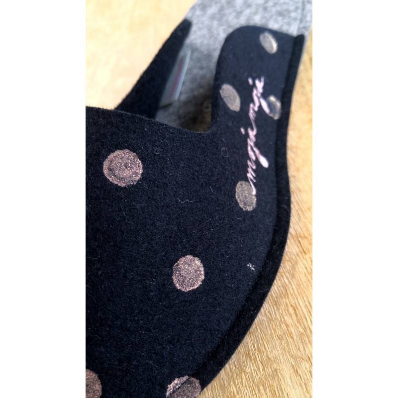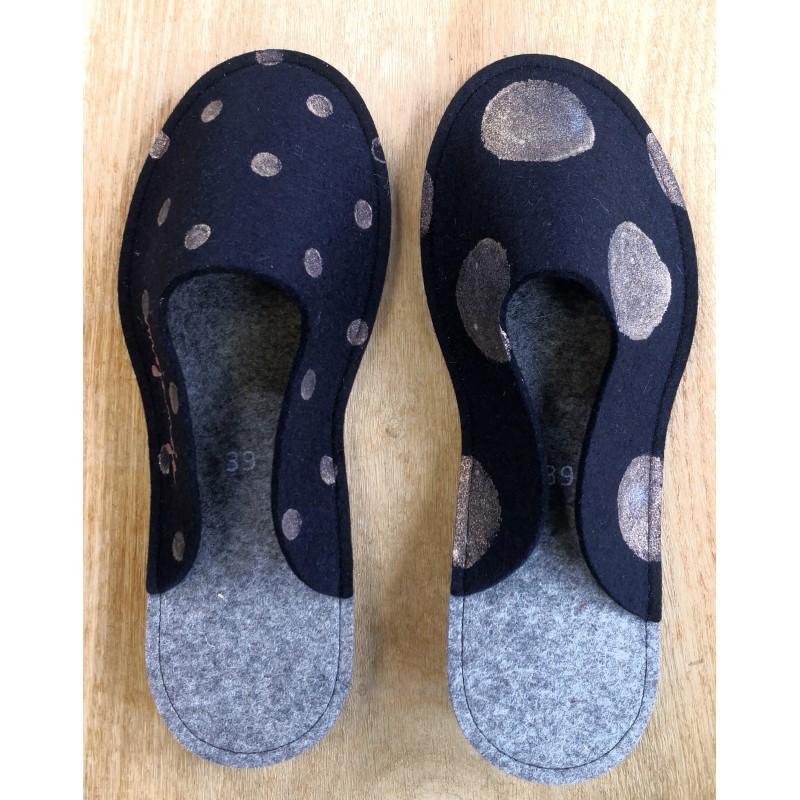 Copati so narejeni v sodelovanju z Ursanina. Izdelani so iz 100 % volnenega filca. Zaradi izjemnih naravnih lastnosti volne vam bo v copatih udobno skozi vse leto. Copati so potiskani in/ali ročno pobarvani z barvami za tekstil z Oeko-Tex certifikatom.