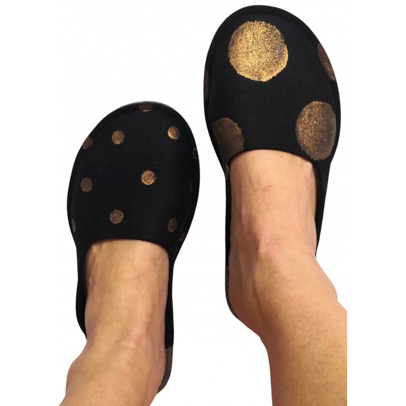 Copati so lahki, mehki in tihi. Podplati so prevlečeni z nedrsečim premazom iz kavčuka in ne drsijo. Lahko pa na podplate dodamo tudi gumo. Če imate zelo hladna tla, lahko za vas izdelamo copate z dvojnim podplatom.
