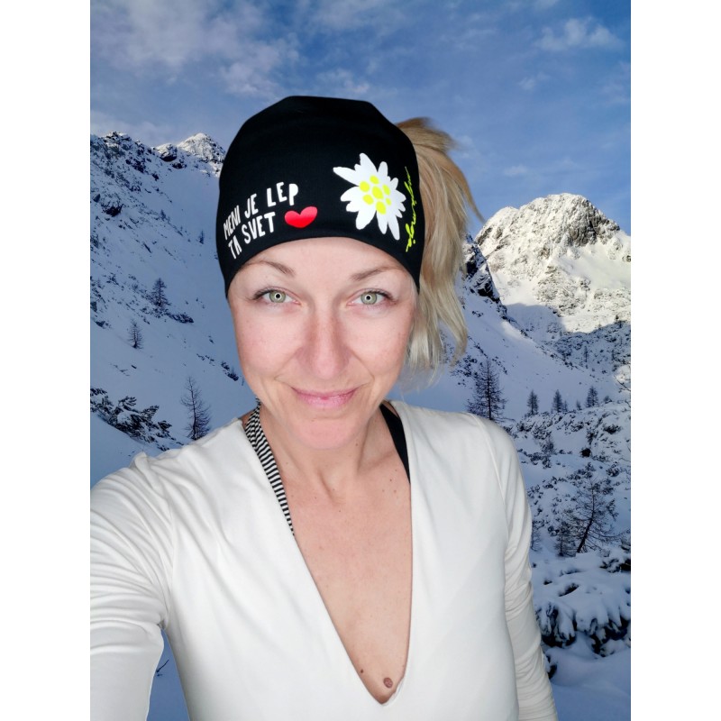 Udoben črn trak Meni je všeč ta svet. Širina 10 cm, obseg traku 52 cm.