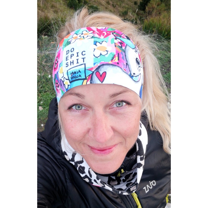 Trak za ušesa iz tankega softshell stretch materiala. Širina 10 cm (zadaj skupaj zašito, da preprečuje lezenje traku z glave), obseg traku(traku, ne glave...trak se raztegne, da lepo oprime ;) 50-52 cm.