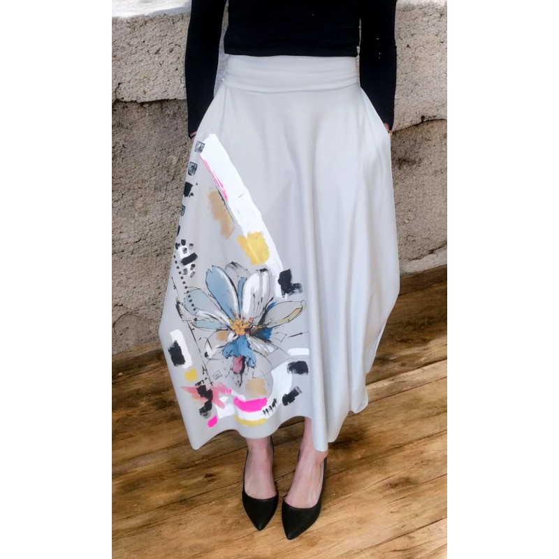Udobno dolgo krilo iz bombažne prevešanke, potiskano in ročno poslikano.