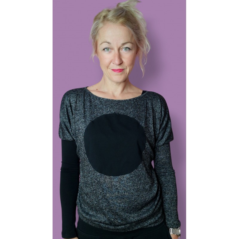 Širše krojena siva majčka iz mekega viskoznega jerseya z dolgimi oprijetimi rokavi, z našitim črnim krogom.