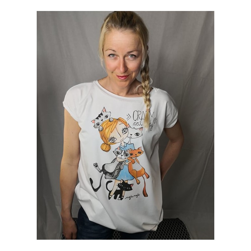 Udobna in prevelika majica s potiskom Crazy cat lady.