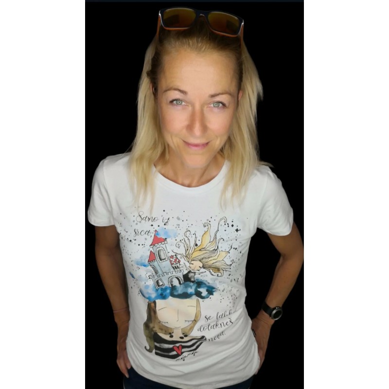 Bela bombažna majčka s potiskom Iz srca