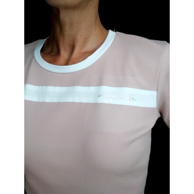 Nežna majčka v nude barvi iz rebrastega bombažnega jersija.