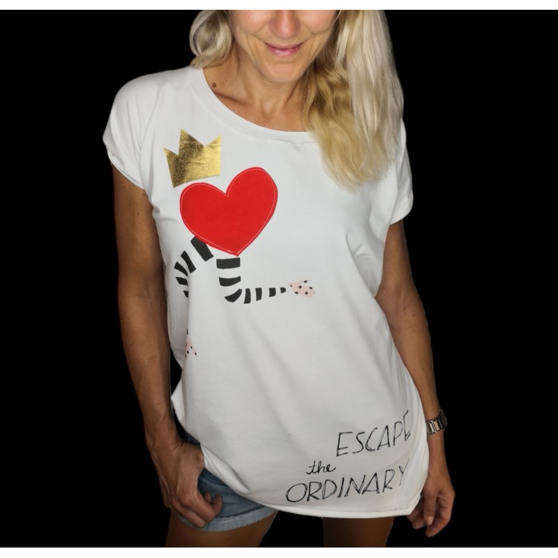 Udobna in prevelika majica s potiskom ilustracije Escape the ordinary.
