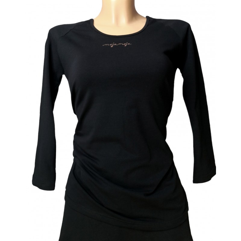 Črna majčka s 3/4 rokavi iz udobnega bombažnega jerseya.