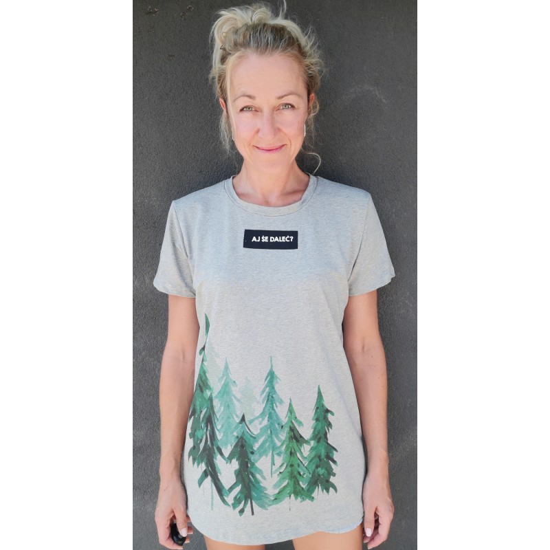Siva moška majica iz bombažnega jerseya potiskana z ilustracijo pokljuških smrek :)