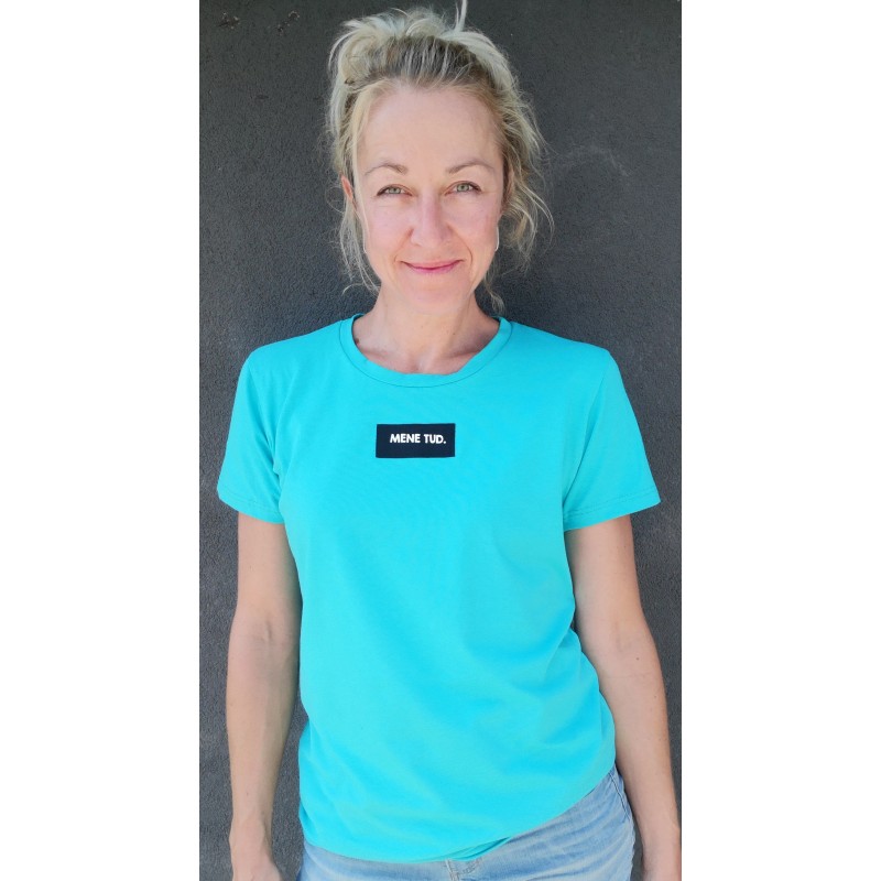Turkizna moška majica iz bombažnega jerseya z napisom Mene tud - pogovarja se z majico BMK ;)