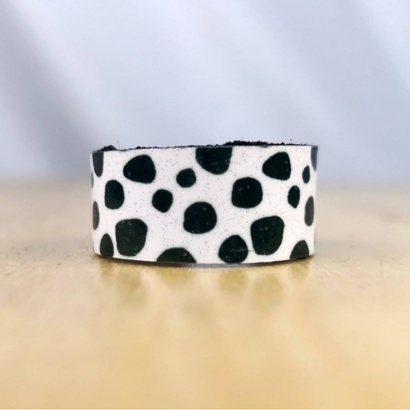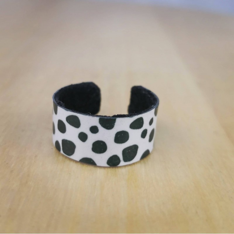 Narejen iz s tekstilom podloženega in potiskanega jekla. Prstan se v obsegu širi in oža in tako povsem prilagodi vašemu prstu. Širina: cca 0.8 cm