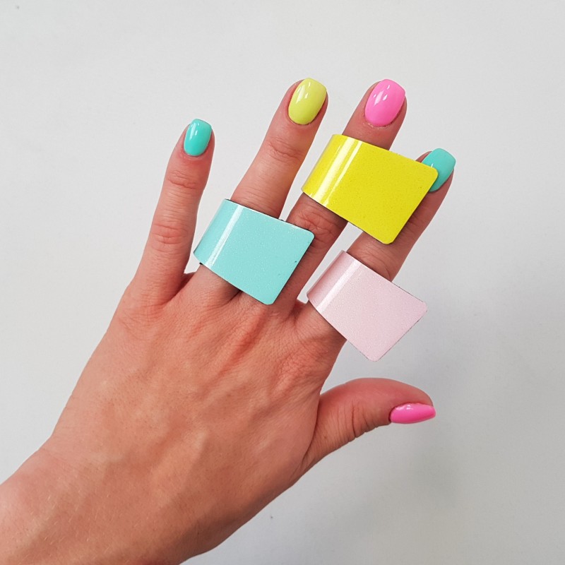 Narejen iz s tekstilom podloženega in potiskanega jekla. Prstan se v obsegu širi in oža in tako povsem prilagodi vašemu prstu.