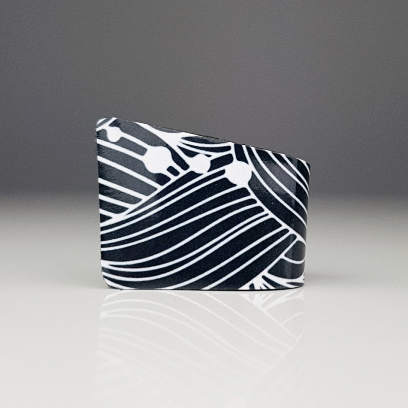 Narejen iz s tekstilom podloženega in potiskanega jekla. Prstan se v obsegu širi in oža in tako povsem prilagodi vašemu prstu. Širina: cca 2,2 cm