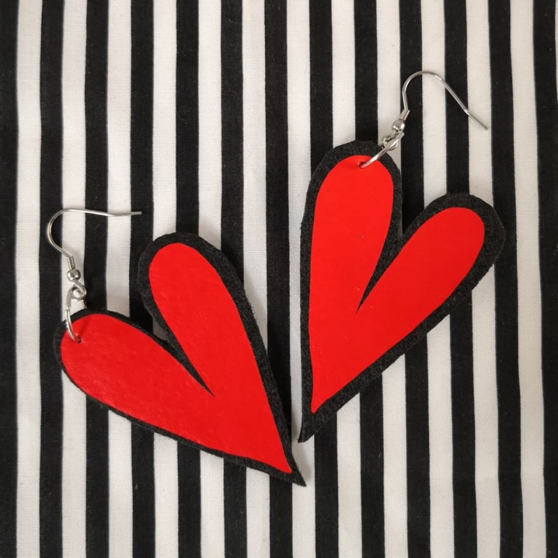 Ultra lahki srčkani uhani, udobni za nošenje. Velikost posameznega uhančka cca 6,5 x 4,5 cm.