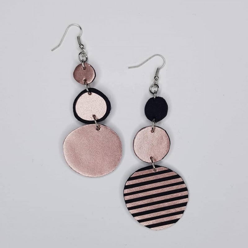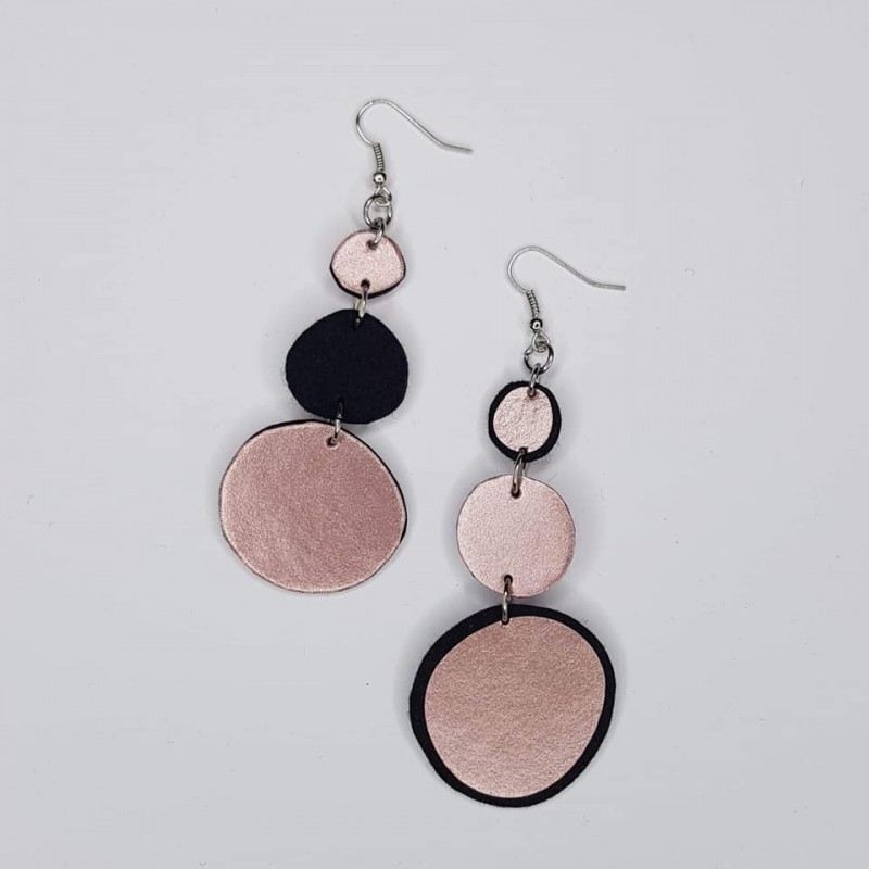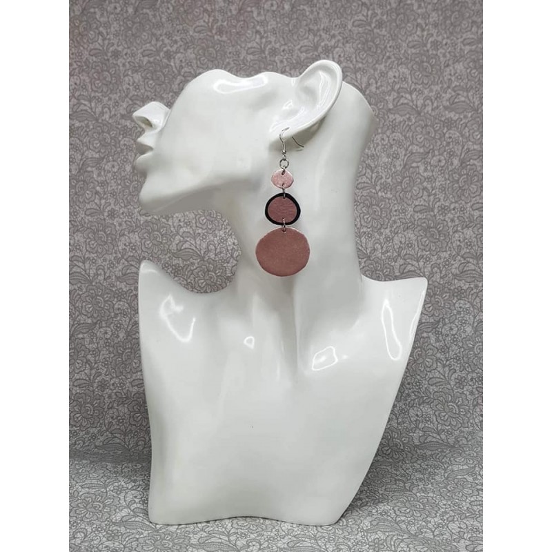 Ultra lahki uhani v rosegold barvi. Celotna dolžina uhanov (s kaveljčkom) je cca. 9 cm, širina 3,5 cm.