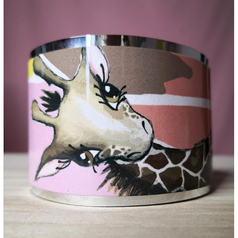 Ročno narejena iz kombinacije zrcalnega skaja in grafično potiskanega jekla. Zapestnica je lahka in prijetna za nosit. Obseg je prilagodljiv. Na voljo v lični embalaži. Širina zapestnice: cca 5cm.