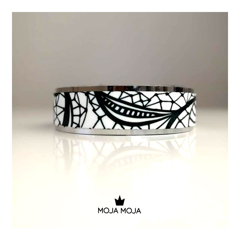 Ročno narejena iz kombinacije zrcalnega skaja in grafično potiskanega aluminija. Zapestnica je lahka in prijetna za nosit. Obseg je prilagodljiv. Na voljo v lični embalaži.