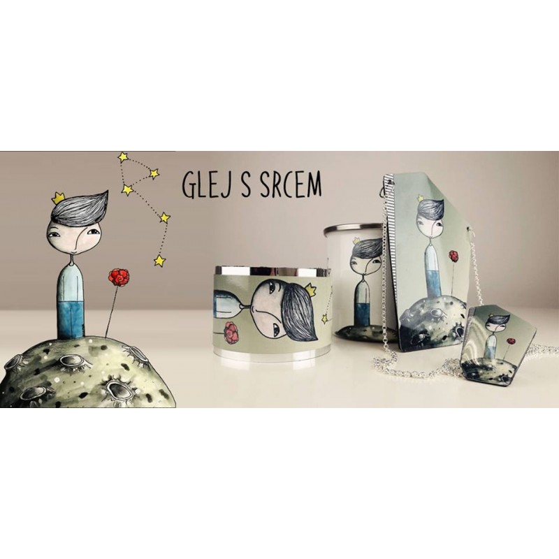 Ročno narejena iz kombinacije zrcalnega skaja in grafično potiskanega jekla. Zapestnica je lahka in prijetna za nosit. Obseg je prilagodljiv. Širina zapestnice: cca 5cm. Na voljo v lični embalaži.